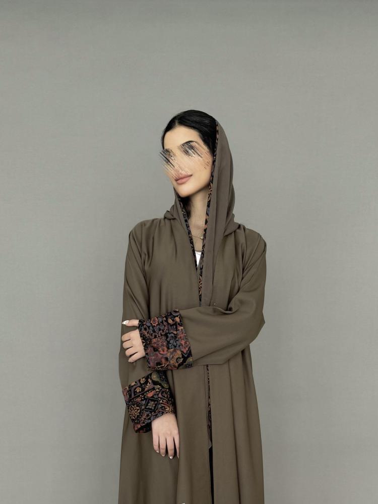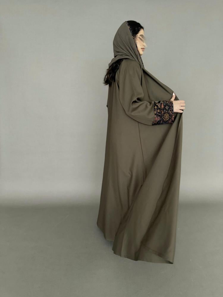 عباية باللون الزيتي الغاامق مع اكمام قطن هندي ملون 😍✨